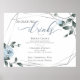 Floral azul polvoriento para combinar con el tema de su boda, Bebidas de cóctel con nombre personalizado para la novia y el novio con espacio adicional para opciones alternativas. Rosas de acuarela, hojas y bayas en azul polvoriento chic moderno rodean un marco plateado de estilo terrario geométrico con vegetación de color verde salvia. Personalice el texto, el estilo de fuente, el color y el tamaño. Obra de arte original creada para BarefootBride™ por © WhimsicalArtwork™ - Esta es parte de una suite completa de papelería de boda con papelería de boda, baby shower y otros eventos coincidentes.