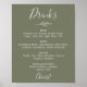 Póster Menú de Bebidas de Boda Verde Oscuro con Hoja Mini