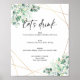 Póster de Menú de Bebidas de la Barra Geométrica de Eucalipto Verde. Características hojas de eucalipto en acuarela y un marco geométrico dorado. La palabra 'bebamos' no es editable.