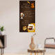 Letrero de menú de café con café turco, café helado, café caliente y una bolsa de granos de café.