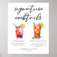 Este poster del menú de cócteles de la moda destaca por su tipografía negra personalizado sobre 2 bebidas y sus ingredientes para su bar boda. Un bonito templo sucio de Shirley y un dibujo de té helado de Long Island añaden un toque fresco a su menú del bar. Con los nombres de la pareja y la fecha de recepción.