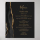 El borde izquierdo de este elegante letrero de menú de boda moderno presenta un borde de ágata de acuarela negra recortado con brillo dorado falso. La palabra "Menú" aparece en escritura dorada sobre un fondo negro de pizarra. Personalice el texto restante con los nombres de la pareja, la fecha de la boda y los detalles del menú.