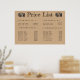 Póster Menú de Precios de Fotografía de Cámara Kraft Póst