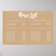 Póster Menú de precios de servicio KRAFT Cartel impreso p