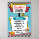 Póster Menú de restaurante retro de los 50 en teal, rojo,