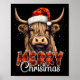Póster Merry Christmas Highland Cow Western Santa Hat Xma
