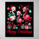 Póster Merry Christmas Lights Flamingo Santa Hat Snow Xma
