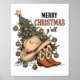 Póster Merry Christmas Y'all Western Cowboy Boots Hat Xma