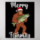 Póster Merry Fishmas Bigfoot Fishing Funny Sasquatch Sant