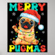 Póster Merry Pugmas Pug Christmas Santa Pug Xmas Lights D