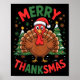Póster Merry Thanksmas Turkey Santa Hat Christmas Tree Fa