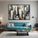 Siente el pulso de la ciudad en esta dinámica obra de arte. Formas geométricas y contrastes llamativos recrean la energía vertical de la vida urbana. Perfecta para espacios contemporáneos, esta pieza es un tributo a la arquitectura moderna y al ritmo implacable de la metrópolis.