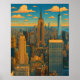 Transform your space with this stunning, stylized poster of New York City's iconic skyline. From the majestic Empire State Building to the sleek silhouette of One World Trade Center, every detail bursts with architectural brilliance and urban charm.
