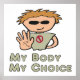 My Body My Choice muestra a una persona levantando la mano para detener la interferencia. La señal de paro en el pecho dice lo mismo. Debajo de las palabras "Mi cuerpo, mi elección". Cualquiera sea la razón por la que la gente o los gobiernos quieran interferir con usted, la respuesta es la misma. Atrás, es mi cuerpo, elegiré lo que le pase.