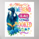 Diseño vibrante y colorido con un dragón con libro abierto y rosas azules. El colorido texto dice: "Mi fin de semana está lleno". Este diseño está disponible en una amplia variedad de productos.