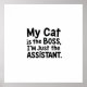 Un diseño tipográfico humorístico y relacionado con la cita: "Mi gato es el JEFE, yo soy el ASISTENTE". Las letras simples, audaces y negras sobre un fondo gris claro hacen una declaración clara y juguetona sobre la verdadera dinámica de poder en la casa del dueño de un gato. Este diseño es perfecto para los amantes de los gatos, para imprimir en camisetas, tazas o para compartir en los medios sociales para celebrar a los caciques felinos en nuestras vidas.