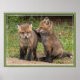 Dos kits de zorros rojos comparten un momento justo fuera de su cueva.