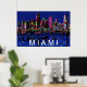 La ciudad de Miami, Florida, cubierta de graffiti. En esta versión nocturna, el horizonte de la ciudad se refleja en el océano. Trae obras de arte de estilo callejero a tus paredes con ciudades cubiertas de graffiti.