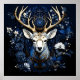 Nocturnal grace with shadow bloom, a gothic inspired deer head portrait adorned with indigo florals.
