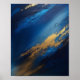 Esta es una pintura digital abstracta que presenta brochas audaces y texturales en una sorprendente paleta de azul profundo, cobalto e índigo, que contrastaron dramáticamente con brillantes acentos de oro metálico. La composición utiliza líneas diagonales fuertes para crear un sentido de movimiento y energía, evocando imágenes de una ola rápida y lujosa, una ducha de meteoritos o la profunda profundidad de un cielo nocturno. Las texturas contrastantes (azules lisos y mezclados y oro muy impactante) añaden un interés dinámico y sofisticación a esta pieza contemporánea.