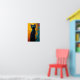 A stylized digital painting of a black cat with piercing yellow eyes, seated against a moody abstract background of teal, blue, and orange. The expressive brushstrokes and shadowy tones evoke mystery and elegance. This piece blends realism with atmosphere, perfect for lovers of feline art and dark aesthetics.