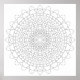 Mandala digital de la Sahasrara o Corona Chakra en la tradición hindú/yogica representada como mil mandala de loto con petino. Poster de negro sobre blanco.