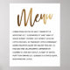 Inform your guests of their celebration menu options with the help of this simple design. For the header, I've used a casual, modern, handwritten font to create a graphic typography overlay simply reading "Menu". This image was embellished with a smooth faux gold foil effect for a festive result. Fill in the template blanks with your details to personalize the design. All layers were left unlocked so you can also click to further customize and re-position text or even change sizes or fonts. Change the background to any color you prefer. Please do not hesitate to reach out for assistance with customization.