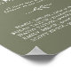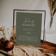 Este cartel conmemorativo minimalista de hoja verde oscuro en memoria conmemorativa es perfecto para una boda elegante. El diseño presenta una silueta simple de hoja de vegetación en verde oliva con estilo bohemio montañoso minimalista.