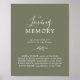 Póster Minimal hoja verde oscuro En memoria conmemorativa