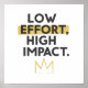 Embrace the power of working smart, not hard, with this bold and modern graphic. The motivational quote "Low Effort, High Impact" is a minimalist statement for efficiency and success. Featuring clean, bold text and a simple gold crown, it's the perfect design for entrepreneurs, leaders, and anyone who believes in achieving maximum results with focused energy.