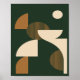 Póster Minimalist Curved Shapes on Dark Green Background