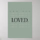 A quiet reminder for everyday life. This minimalist green poster features the simple phrase “You Are Loved” in clean, refined typography. Soft in tone and effortlessly modern, it blends seamlessly into home offices, bedrooms, entryways, or professional spaces. Designed for those who appreciate understated elegance, it offers warmth without distraction—an elevated accent that feels both personal and timeless.