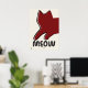 This "Minimalist Red Cat Silhouette Poster" is a bold and striking piece of art that captures the essence of feline grace and mystery with just a few simple lines. The deep red silhouette of the cat, outlined in black, stands out against a light background, making it a powerful visual statement in any room. Below the silhouette, the word "MEOW" is playfully rendered in a textured font, adding an extra layer of charm and personality to the design.