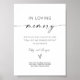 Presentamos el "Rótulo de Boda de memoria de amor", un símbolo de gracia y recuerdo, diseñado en un estilo minimalista y elegante. Este cartel rinde homenaje a los queridos seres queridos que tal vez no estén presentes en persona, pero cuyos espíritus son para siempre parte de este día especial. El Rótulo de In Loving Memory Boda, redactado con cuidadosa consideración, capta la esencia de la reverencia y la simplicidad. Su diseño minimalista exuda una elegancia subestimada, permitiendo que el foco descanse en los sentidos sentidos que representa. Las líneas depuradas y los tonos sutiles crean un ambiente sereno, que nos recuerda el amor perdurable que trasciende el tiempo.
