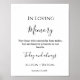 Con este encantador cartel de boda "En la memoria amorosa", puedes recordar a los seres queridos que han fallecido. Los detalles modernos de caligrafía escrita a mano adornan el diseño. Personalízalo con los nombres de la pareja e incluso cambie la redacción si lo desea. Todo el texto es editable.