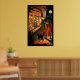 Decore su pared con un fantástico poster de Halloween con una bruja mirando a través de una ventana donde los niños están cogiendo manzanas en la noche de Halloween. com.