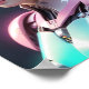 Una joven de cabello rosa mira suavemente, mezcla de estilo futurista y anime. Su atuendo detallado incluye elementos metálicos y acentos brillantes, añadiendo un toque de ciencia ficción.