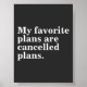 Agarra esta camiseta de "Mis planes favoritos son planes cancelados" de diseño, que dice graciosamente: para mostrar tu sentido del humor usando este estilo básico de texto. para los amantes del arte contemporáneo negro y blanco. Estoy seguro de que puede encender muchas conversaciones y ayudará a romper el hielo. Este diseño es un gran regalo para amigos o familia introvertidos y también hace un regalo de cumpleaños, de vacaciones o de Navidad. (PUEDE CAMBIAR Y PERSONALIZAR ESTE DISEÑO DE TEXTO O CUALQUIER TEXTO QUE DESEE EN MI TIENDA)