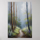 Póster Misty Forest Path with Sunlight Atmospheric Nature