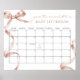Mocha Bow Baby Shower Adivinar con fecha vencida Poster del calendario - Un encantador poster de juegos de ducha de bebé con un delicado diseño de arco de mocha, perfecto para que los huéspedes adivinen la fecha de llegada del bebé. Este elegante calendario le da un toque lúdico y elegante a la decoración de las duchas de bebé, lo que lo convierte en un recuerdo memorable para los futuros padres. Cambie los días en consecuencia con el mes que necesite, vaya al enlace "Editar usando la herramienta de diseño" para mover la fecha de vencimiento a un día diferente. CÓMO JUGAR: Los invitados firman el calendario con sus predicciones para el cumpleaños del bebé. ¡El invitado a adivinar la fecha de nacimiento (o la más cercana) gana el juego! *** Consulta la colección de juegos, invitación, carteles y más *** *** Por favor, introduce el H139 en la búsqueda de la tienda para encontrar todos los elementos coincidentes *** O visita nuestra colección Mocha Bow. *** Este diseño de alta calidad es fácil de personalizar para que coincida con tus colores, estilos y temas de la ducha. Para una mayor personalización, haga clic en el enlace "Editar usando la herramienta de diseño" y utilice nuestra herramienta de diseño para modificar esta plantilla. Si necesita ayuda o elementos coincidentes, por favor contáctame.