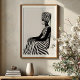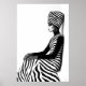 Hacer una declaración sorprendente con esta cautivadora impresión de arte en blanco y negro, una exhibición magistral de moda vanguardista y diseño gráfico audaz. Este elegante retrato presenta a una mujer envuelta en un icónico conjunto de rayas de cebra, creando un fascinante ritmo visual. Su alto, escultórico cabezazo, una dramática extensión del patrón rayado, enmarca su perfil sereno y su expertamente maquillada cara. Vestida con una elegante y larga manga en la parte superior de un cuello de cuello de tortuga y una falda que fluye, las rayas monocromáticas se utilizan con audaz precisión para acentuar su forma y crear un potente patrón inmersivo. La composición, inclinada elegantemente contra una pared blanca y sutilmente sombreada, destaca el contraste crudo y la interacción dinámica de las líneas. Perfecto para espacios vivos modernos, estudios de moda o cualquier decoración que busque un toque de elegancia única, estilo minimalista y una presencia gráfica inolvidable.