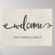 Esta casa de campo rústica y a la moda parece poster, con un aspecto de madera blanca que imita la palabra "bienvenido" con un tono más ligero. Personaliza con tu apellido.