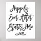 Elegante poster que dice "Feliz para siempre después de empezar aquí"