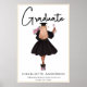 Modern Casual Script Graduate Class of 2023 Poster - Chic poster features, a lovely fashionable graduate proudly carrying her diploma and bouquet of pink roses. Graduate is in modern script typography. Poster is personalized with a a graduate with blonde, brown, or black hair and is personalized with your name and high school with year. Would look great on display at the Graduate's Graduation Party, or makes a thoughtful gift.