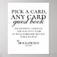 Invite guests to leave a little love in a fun and memorable way with this Black and White Playing Card Guest Book Sign. Featuring elegant calligraphy and a clean, minimalist layout, this sign is perfect for displaying at a card-themed or game-inspired guest book table. Whether you're using a deck of cards, game pieces, or poker chips, this sign adds a playful yet refined touch to your celebration.