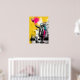 A contemporary emotional artwork capturing a quiet childhood moment through expressive monochrome illustration and bold abstract color textures. The balloon and loyal companion create a touching scene of imagination, hope, and innocence. This modern narrative piece blends urban aesthetics with decorative sophistication, making it ideal for creative interiors and contemporary home decor.