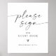 Póster Modern Handwriting Heart Wedding Guest Book Sign
