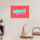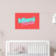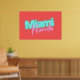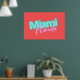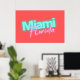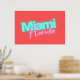 Diseño tipográfico moderno y colorido presenta "Miami Florida" en agua y texto de neón rosa sobre fondo salmón/coral