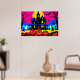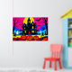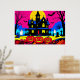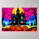 Step into a Halloween that refuses to be quiet! This artwork takes the classic haunted graveyard scene and blasts it with the electrifying energy of a vintage comic book. A bold, gothic manor stands silhouetted against a hot pink sky, while a classic halftone moon beams down on a world of electric blue and vibrant purple. Friendly ghosts and grinning jack-o'-lanterns pop in brilliant, saturated color, creating a scene that's more festive than fearful. What makes this piece truly special is its perfect fusion of spooky subject matter with the fun, graphic style of 1960s Pop Art. It’s the ultimate statement piece for a high-energy Halloween party or for the modern decorator who believes the holiday should be celebrated with bold, unapologetic style. This isn't just wall art; it's a celebration of Halloween at its most fun and fearless.