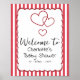 Póster Modern Red Chalk Stripes Triple Hearts Baby Shower